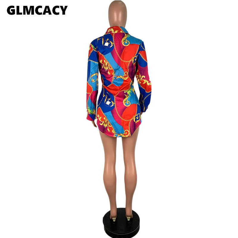 Women Streetwear Turn Down Collar Button Long Sleeve Dress Autumn Casual Print Loose Short Dress Above Knee Dress Beautybymarket